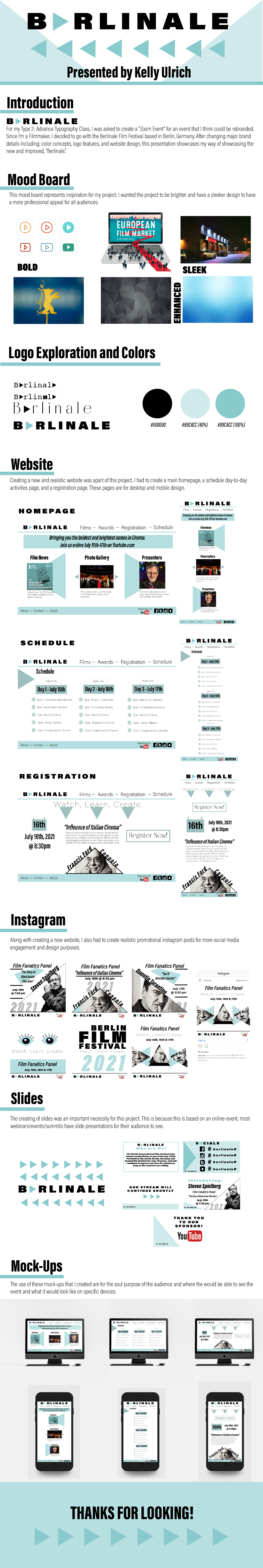 *DISCLAIMER: I am not affiliated nor was paid for this Berlinale Film Festival Webinar Branding Project. This project was strictly for my Typography II: Advance Type class at Avila University in the VISCOM department.